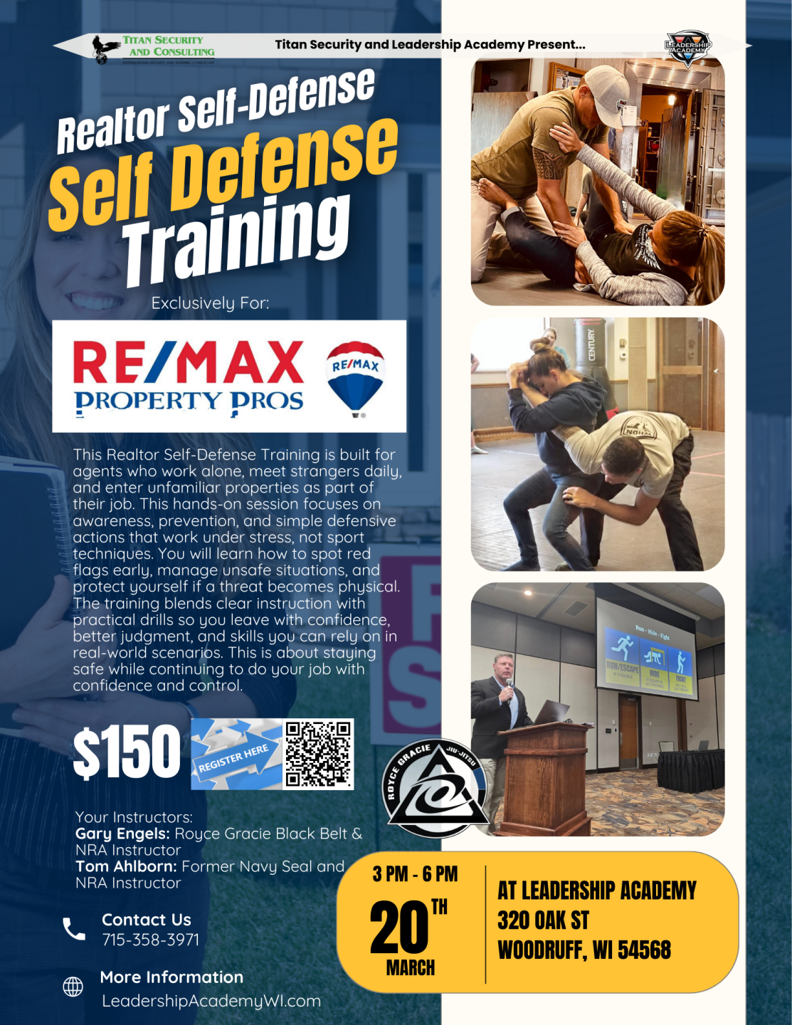 This Realtor Self-Defense Training is built for agents who work alone, meet strangers daily, and enter unfamiliar properties as part of their job. This hands-on session focuses on awareness, prevention, and simple defensive actions that work under stress, not sport techniques. You will learn how to spot red flags early, manage unsafe situations, and protect yourself if a threat becomes physical. The training blends clear instruction with practical drills so you leave with confidence, better judgment, and skills you can rely on in real-world scenarios. This is about staying safe while continuing to do your job with confidence and control.